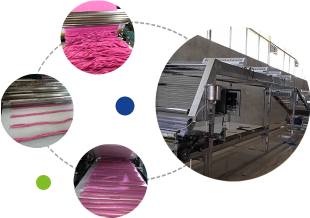 大型河粉機(jī)的工作主要是將磨好了的米漿自動(dòng)輸入大型河粉機(jī),通過(guò)大型河粉機(jī)蒸箱里面的蒸氣把它蒸熟成形,變成河粉···